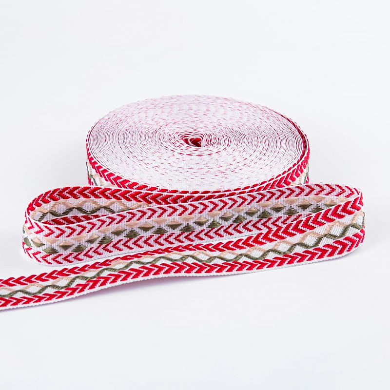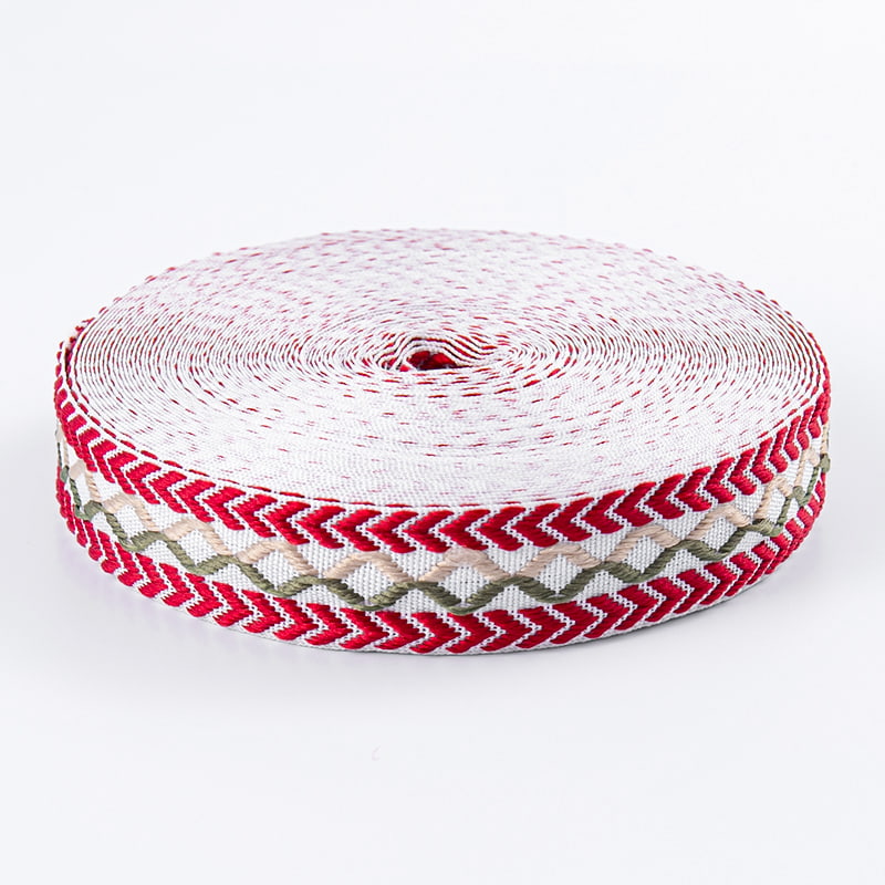 PREV:1.0cm Wear-Resistant Pressure-Resistant Polyester Jacquard WebbingSUSUNOD:Walang susunod na produktos Ang 2.5cm na lapad, dobleng panig, at naka-overlock na jacquard webbing ay nagtatampok ng double-sided na jacquard pattern, na nagpapakita ng mga magagandang pattern sa magkabilang panig. Ipinagmamalaki nito ang pambihirang visual na kagandahan at pagkakayari. Ginawa mula sa premium na mesh yarn at pinagsama sa advanced na teknolohiya ng jacquard, pinagsasama nito ang mga aesthetics sa functionality, na ginagawa itong angkop para sa high-end na bedding, palamuti sa bahay, at mga customized na produkto.